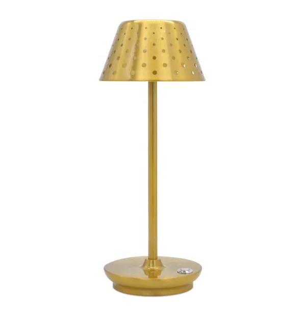 Grâce à ses petits trous dans le chapeau, la lampe professionnelle Bruxelles, apporte une effet géométrique à votre éclairage. Donnez une ambiance chaleureuse et originale à vos tables d'invités ou disposez-la sur le buffet des hors-d'oeuvre afin de les illuminer doucement.