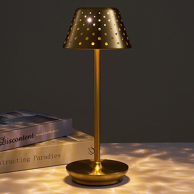 Grâce à ses petits trous dans le chapeau, la lampe professionnelle Bruxelles, apporte une effet géométrique à votre éclairage. Donnez une ambiance chaleureuse et originale à vos tables d'invités ou disposez-la sur le buffet des hors-d'oeuvre afin de les illuminer doucement.